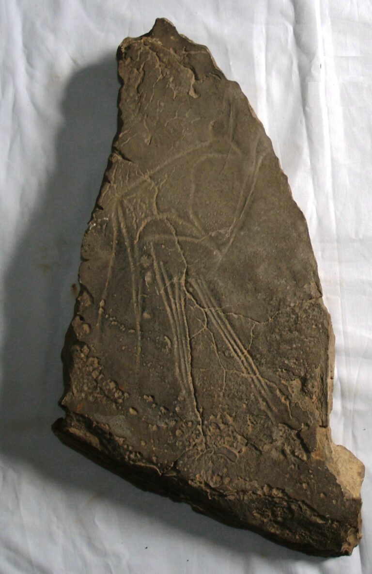 Description: Rock fragments, painted or engraved representing human silhouettes and animals of African wildlife: oxen, elephants, giraffes, rhinos, antelopes, lions, etc.